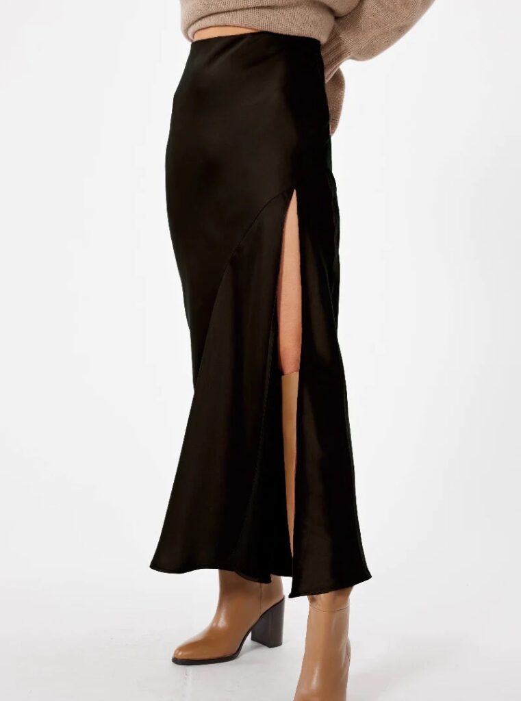 A satin or silk maxi skirt for fall can be a stylish and versatile addition to your wardrobe when styled thoughtfully. Opt for a satin maxi skirt in a deep hue like black, navy, or brown.