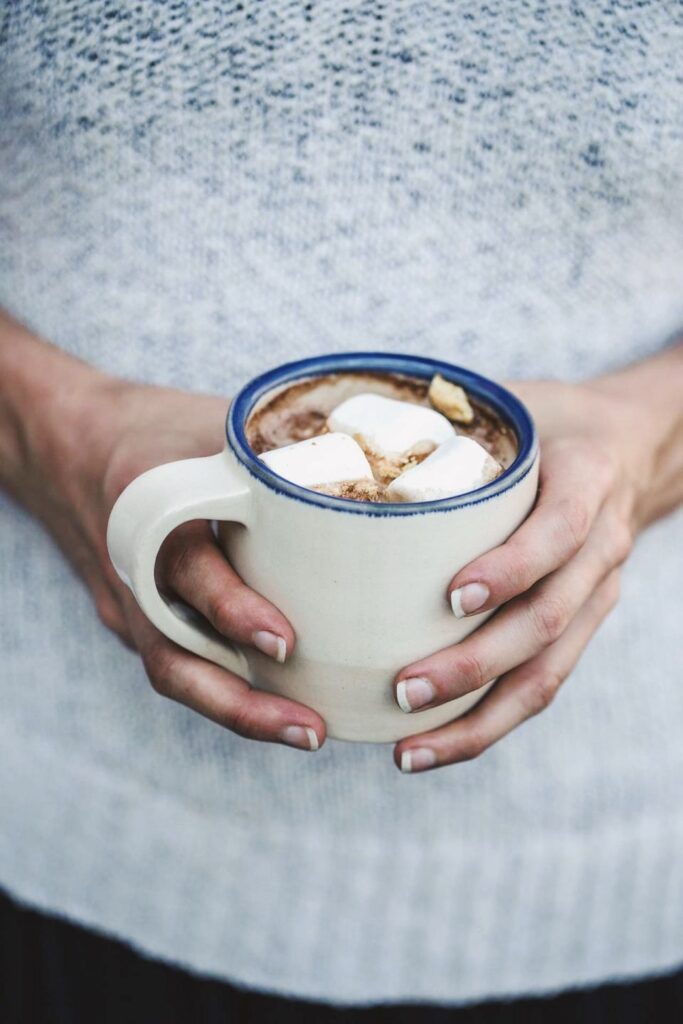 To round out the meal, a simple, moist carrot cake with cream cheese frosting is the dessert I like best. Hankering for a classic outdoor dessert like s’mores? This portable favorite is a fun twist: Use a classic hot chocolate base and load it up with marshmallows and a vanilla simple syrup, topped with crumbled graham crumbs.