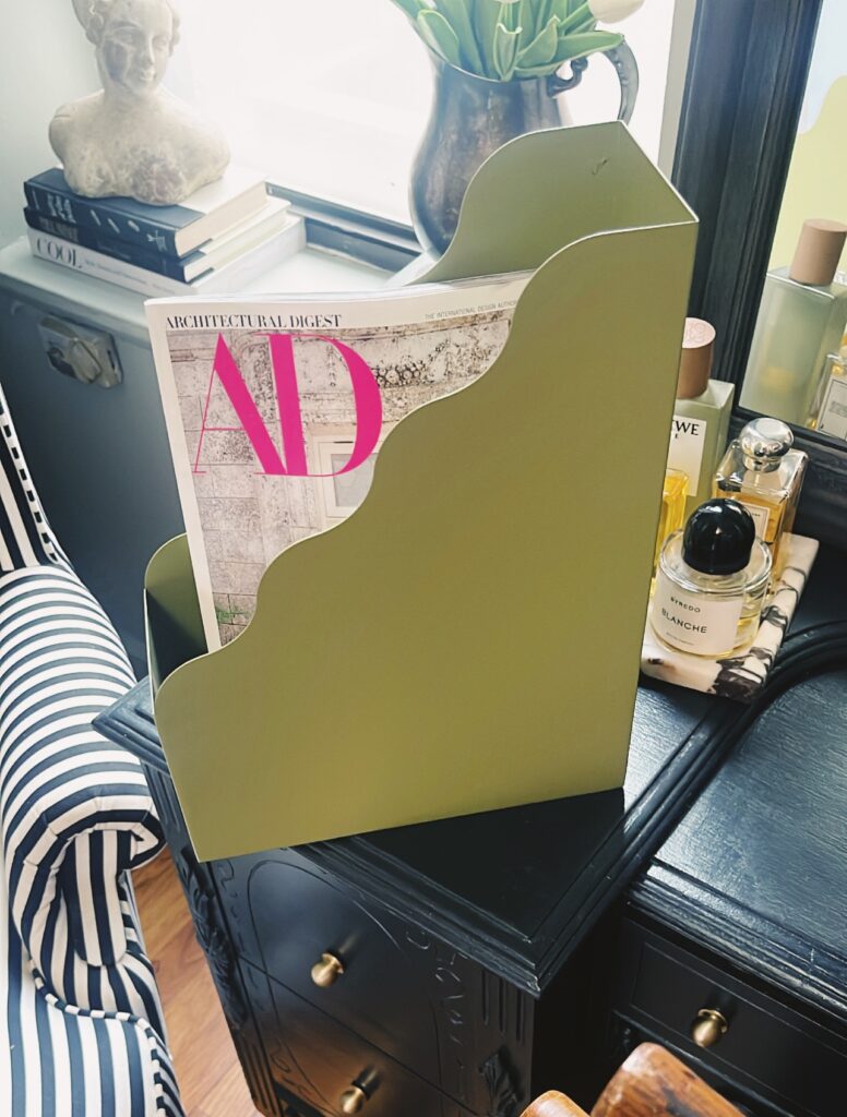 If your teen’s desk has the tendency to become a dumping ground for school notebooks and other papers, keep things in order with a magazine holder, which is perfect for filing away these types of items while ensuring they’re within sight and reach. This one from Red Orchard isn’t your typical piece of office supplies thanks to the scalloped design, which is super on theme!