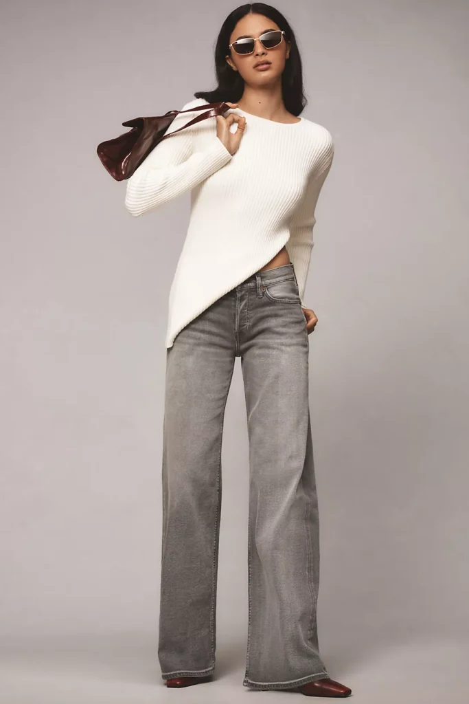 Wide-leg denim offers a chic, relaxed alternative to skinny jeans. This trend is all about achieving a more effortless vibe. To wear it, opt for high-waisted styles to accentuate your waist and balance the volume. Pair wide-leg denim with a fitted top or a cropped sweater and sneakers to create a flattering and balanced look. For a more sophisticated look, add a tailored blazer and pointy-toe heeled boots, which will elevate the casual vibe and elongate your legs.