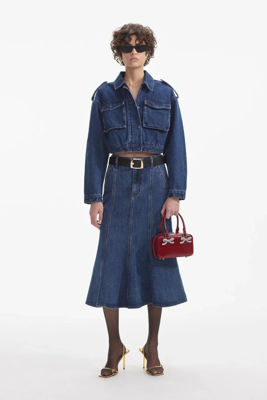 Wylie Grey – Self-Portrait Flared Denim Midi Skirt