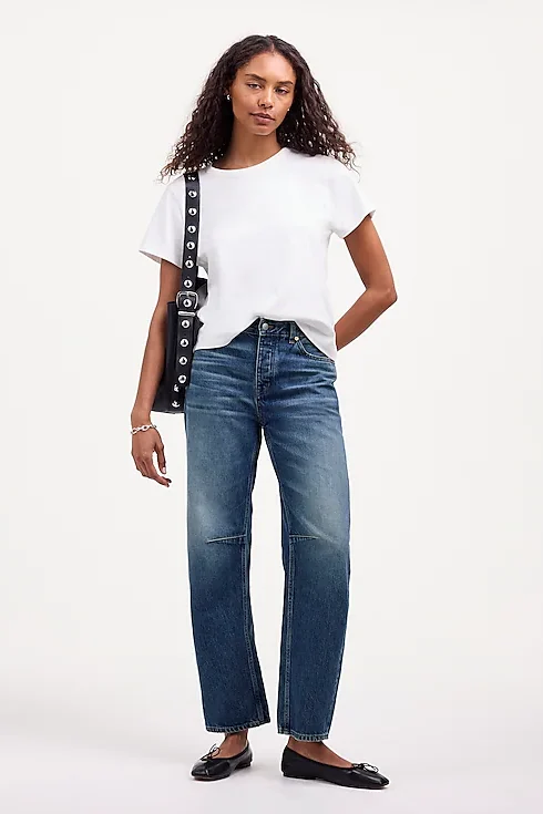 Barrel-leg jeans are characterized by their relaxed, tapered fit that narrows from the thigh to the ankle. These jeans are a modern take on classic denim, and this season, we are seeing them being styled in a variety of ways- from high-waisted cuts that accentuate the waist to cropped versions that highlight stylish footwear. The key is to pair them with a fitted top or a more structured blazer to balance the voluminous lower half. Complete the look with loafers for a look that is effortless and on-trend.