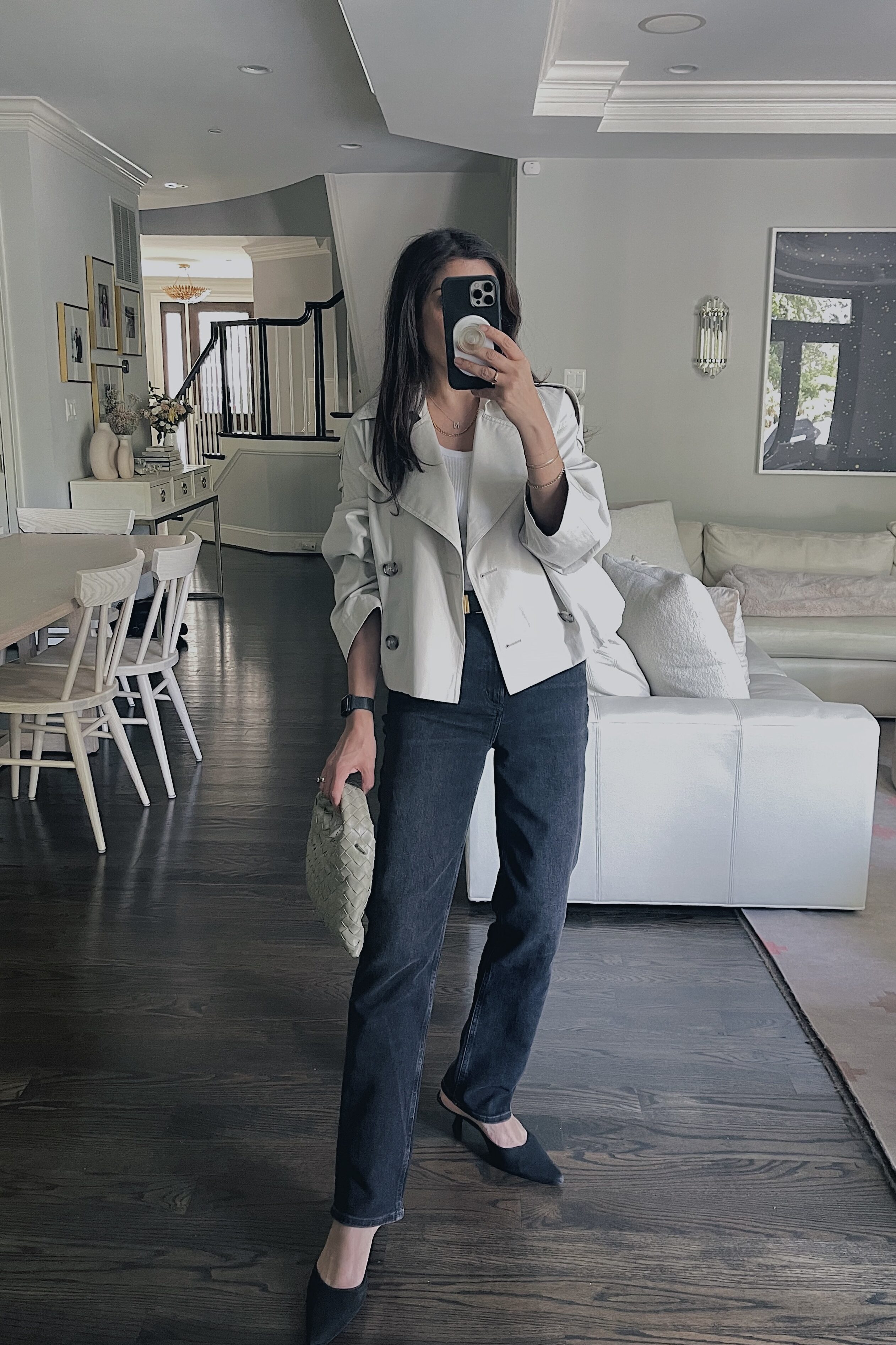 Straight-leg denim is one of my favorite denim trends. This cut flatters a range of body types, offering a polished yet relaxed silhouette that works for so many different occasions. For my clients, I recommend pairing straight-leg jeans with a satin cami, blazer, belt, and heeled mules for an office-ready look. On the weekends, a simple white tee, classic loafers, and a trench create a chic, off-duty look. The beauty of straight-leg denim is in its ability to be both effortlessly casual and perfectly elevated, making it a must-have for capsule wardrobes this season.