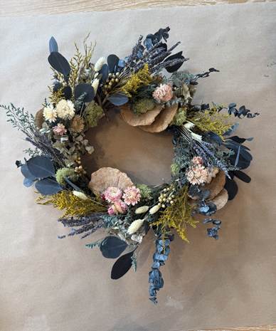 I began with a classic twig wreath form and a mix of dried botanicals. But there are countless ways to start. You might use a ready-to-go kit, a bundle of seasonal blooms, or simple craft supplies picked up nearby. The key is to choose materials that inspire you, whether organic, paper, felt, or even foraged from your own environment.
