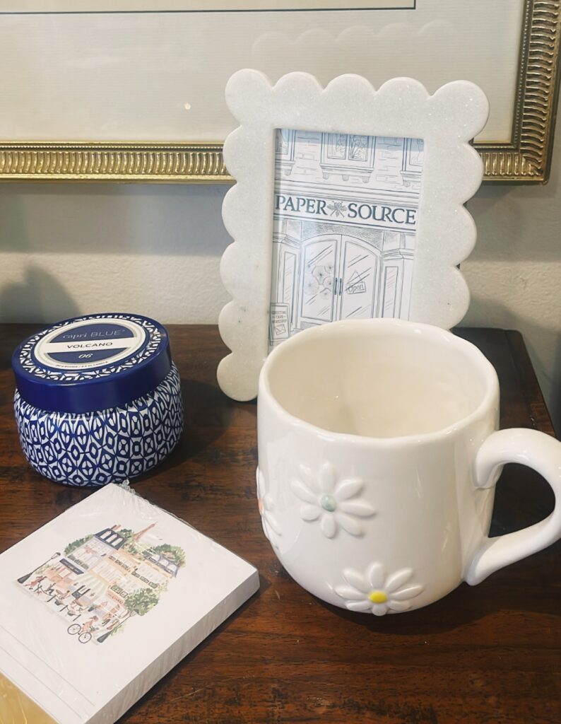 SUPERWOMAN ESSENTIALS // Odds are, Mom’s constantly chugging coffee and making to-do lists, and you couldn’t appreciate her organization skills more. Make her day-to-day routine feel a bit more special by treating her to a pretty little notepad and flowery mug, both from HomeSense. Throw in a luxe-smelling candle from Anthropologie that she can light as she writes down her tasks for the day.
