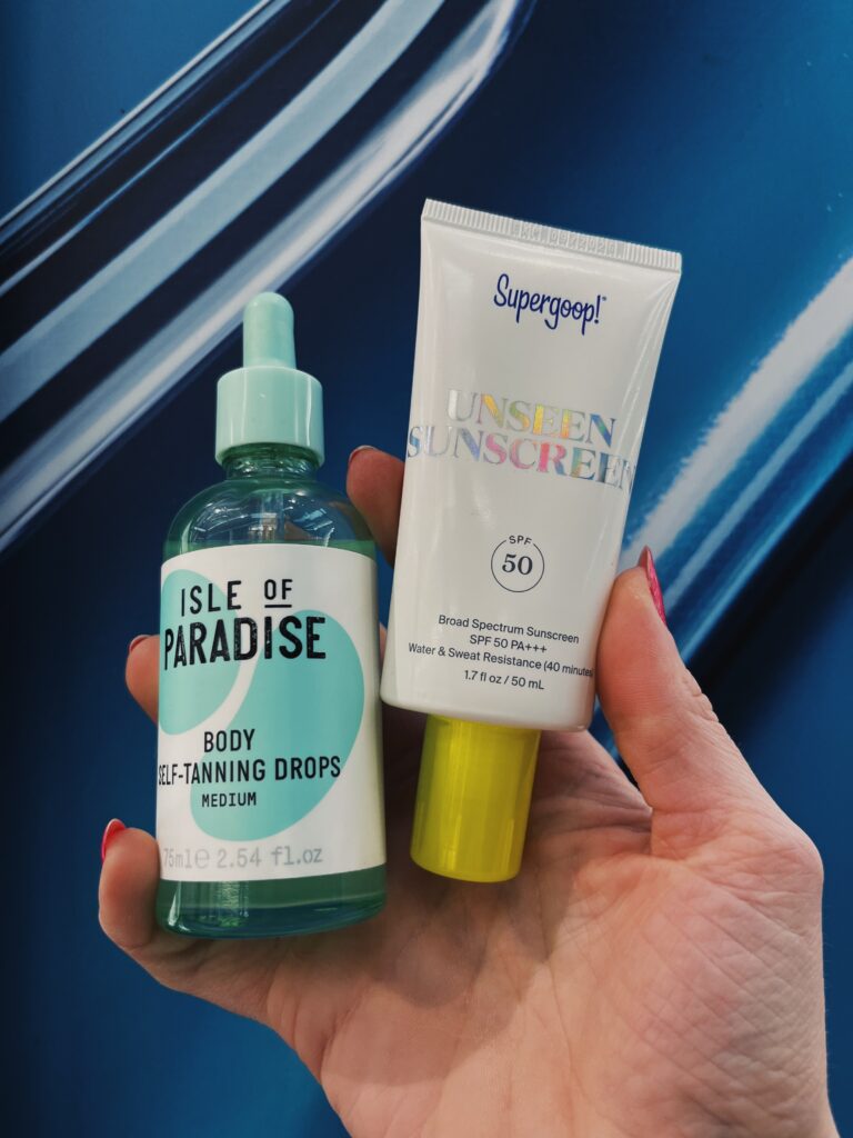 Oh, and sunscreen. Seriously, don’t forget sunscreen. You can also opt for an Isle of Paradise self-tanner (Sephora) if you want to add some color.