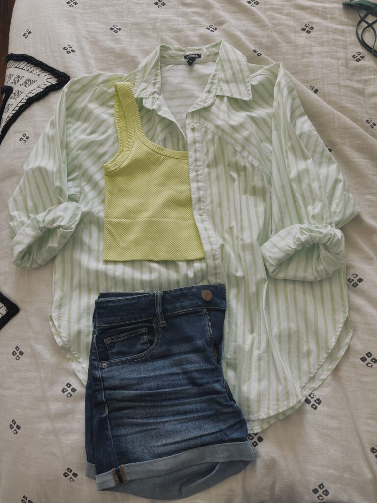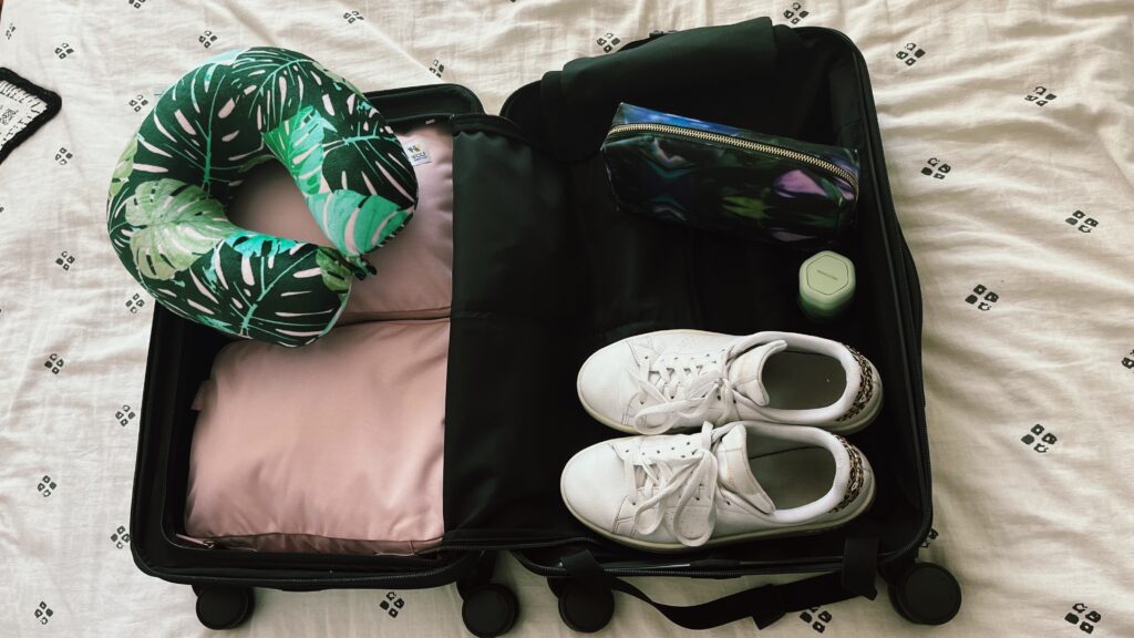 I’m sure you could also fit more if you like the rolling method that some packers suggest. I’ve heard it allows you to save even more room, but I like to layer my clothes by outfit so that everything stays organized, and this way, I save time without having to rummage around to find what I need. I also find this method keeps things from getting too wrinkled in my suitcase.
