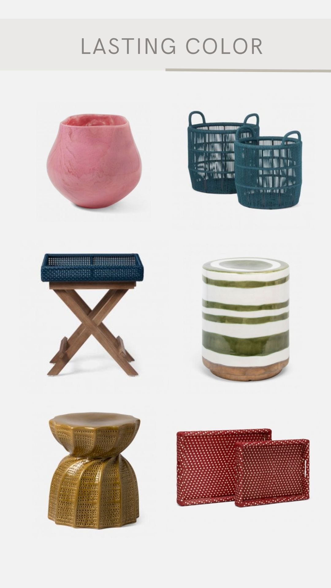 Color is an essential element to any space, but especially one in the outdoors. It is an overlooked detail that brings loads of personality and excitement into an outdoor environment. These are a few items that we have found that bring attention to an outdoor area. While some might steer away from it, having interchangeable accessories through seasons is an easy tool to help transition your space from summer to fall and vice versa. At the same time, muted tones can elevate your space year round and bring a sense of liveliness to your outdoor area.
