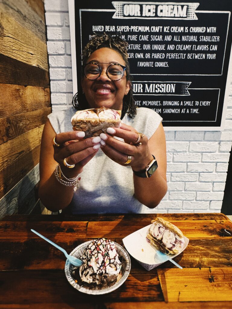 One of the first things on my list was a sweet treat from the Baked Bear Ice Cream. Their spring-themed flavors were calling my name, and I couldn’t resist trying a scoop (or two!). I went to Bear Bowl, the Blackberry crumble. The combination of fresh, creamy goodness and unique flavor twists felt like a celebration of the season. It was the perfect pick-me-up after an afternoon stroll.