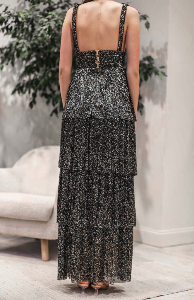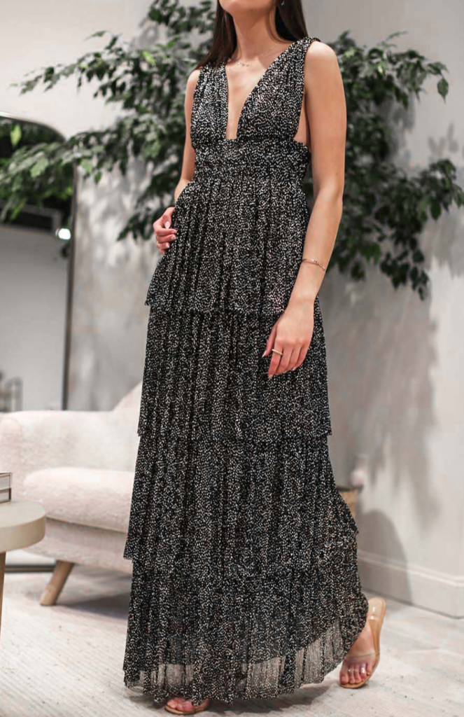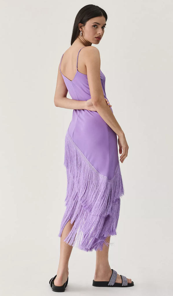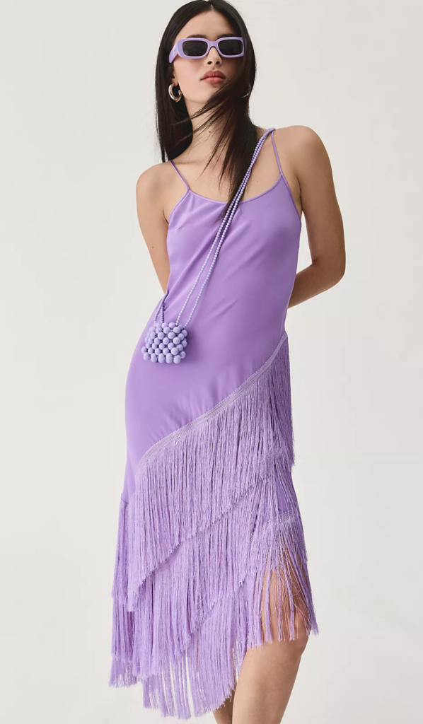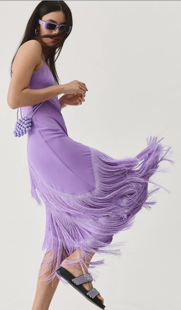 This dress features two top spring trends-fringe and pretty pastels. Fringe is so whimsical and playful and a fringe dress is great if you’re looking for a flirty and feminine party dress.