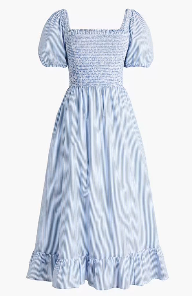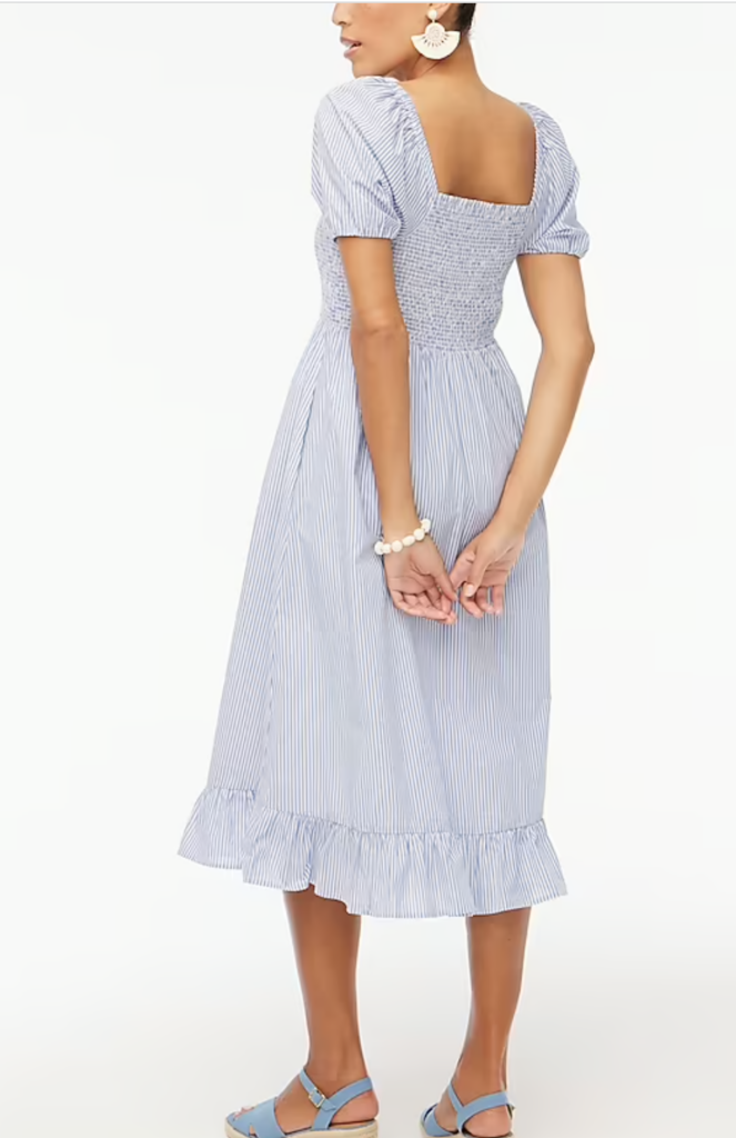 Striped puff-sleeve midi dress, $75, J.Crew Factory